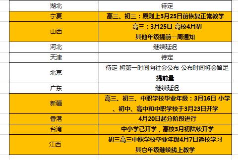 截至3月21日,全国已有16个省市区确定了开学时间,还有18省区未官宣确定。