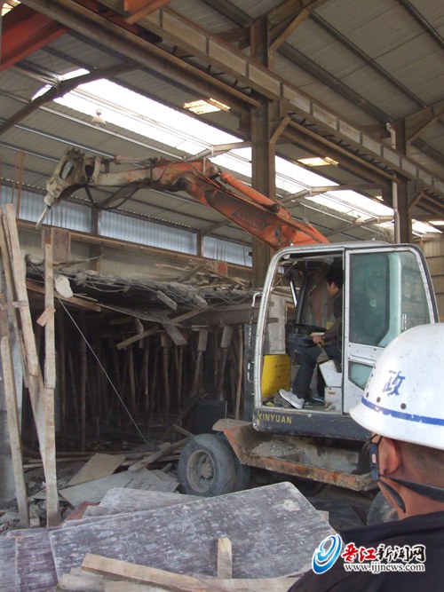 该违建处于机场航道下,业主在原来基础上抢建第二层,已完成模板施工并着手进行钢筋铺设,建筑面积达1000余平方米。陈埭行政执法中队发现后,立即组织人员将该违建彻底拆除。