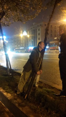 17日晚11时许,在晋江市泉安北路池店镇安踏公司路段,一中年男子站在绿化带上双手紧抱绿化树狂吻。这是咋回事?
