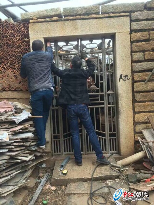 前日,天寒地冻,闽南孝亲安养院大孝法界分会和晋江慈爱公益团队的队员冒着严寒,将采购来的铁门装在了老人的古厝大门位置上。