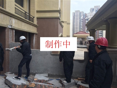 11日下午,晋江安海行政执法中队组织统一行动,对海东鸿塔片区安置房的业主违规装修进行整治,当天共拆除4宗业主私占公共露台的违章搭盖。记者了解到,其中一业主为了扩大面积,擅自在公共通道上砌起整堵围墙,将整个通道半截阻断,这不仅破坏了小区的整体风格,而且严重危及小区的消防安全。此前,安海行政执法中队与物业公司已对此多次进行制止,但业主置若罔闻。执法人员当即将业主砌起的围墙敲掉(如图)。此外,其他3名业主违规在公共露台上搭建木制葡萄架等,执法人员也将这些塔盖强制拆除。