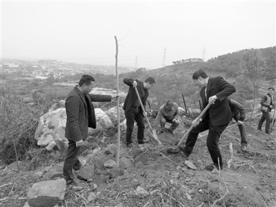 11日上午,晋江内坑镇组织镇机关全体干部职工、各村主干、镇直单位负责人以及市侨台外事局、残联、人行、国投公司、农商银行等市直挂钩单位计200余人,到灵源山(坑尾段)开展义务植树活动。