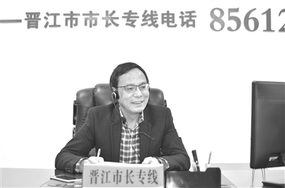 昨日下午,晋江市东石镇镇长颜宏达轮值接听市长专线,接受群众咨询投诉、意见和建议。