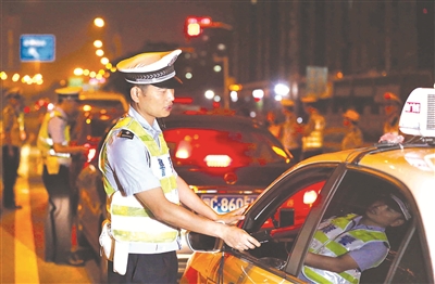 现场,执勤人员封闭一侧道路,对过往车辆逐一检查,要求驾驶员对准酒精检测仪“吹气”测验。“一旦检测仪红灯亮起,则可能涉嫌酒后驾驶,再用更精准的仪器进一步检测出数值。”现场民警介绍,当晚严格执法,每个卡口均检查一部放行一部。