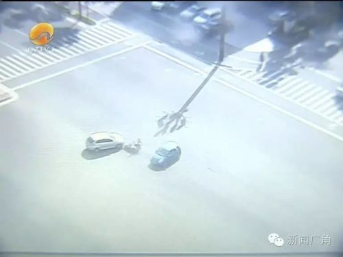 银灰色小车的驾驶员周女士也被这突如其来的一幕吓到了,她赶紧急刹车,但由于惯性,车还是往前走了一小段距离。