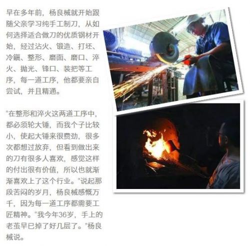 杨良械说,“我现在不是在淬火中谋生,而是在淬火中传承父亲日积月累的精湛技艺。”