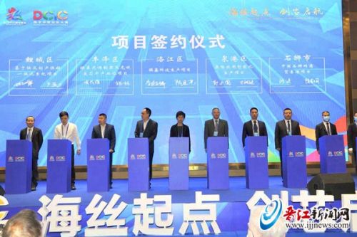 今年来,泉州持续开展产业链招商、龙头企业招商和新基建新经济园区招商,策划生成了一批数字产业重点项目。当天,16个项目在活动现场签约,涉及先进计算、半导体、智能制造、数字平台等领域,计划总投资43.22亿元。其中,有3个项目落地晋江,分别是晋江市南方投资联盟福建创芯中心、全球卫品服务网-5G卫品行业工业互联网数字赋能平台、华厦半导体集成电路高纯材料研发生产项目。