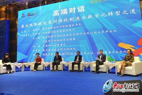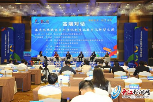 随后,工信部科技司原副巡视员常利民,国务院国资委机械经济管理研究院创新发展部主任、华美半导体协会常务理事宋嘉,上海归心谷董事长邱健,江苏赛昇信息技术研究院院长王军凯,绿色计算产业联盟CTO技术委员会主任、创客智盛资本合伙人郭晶围绕“集成电路赋能泉州传统制造业数字化转型之道”主题展开高端对话,集思广益,为泉州、晋江集成电路产业与传统优势产业融合发展出谋划策。