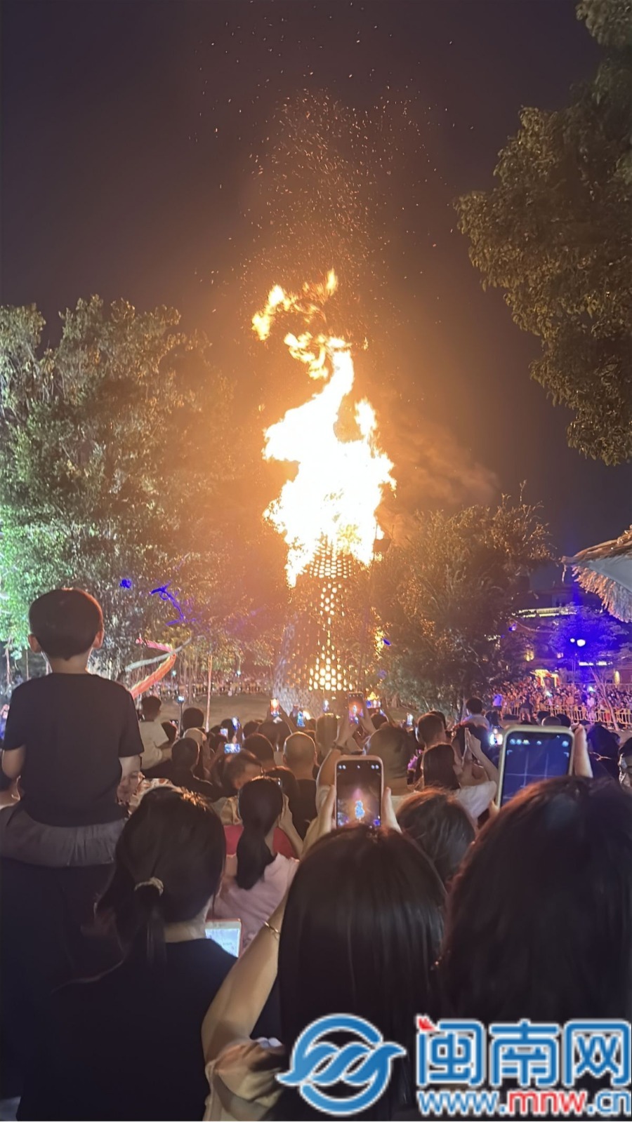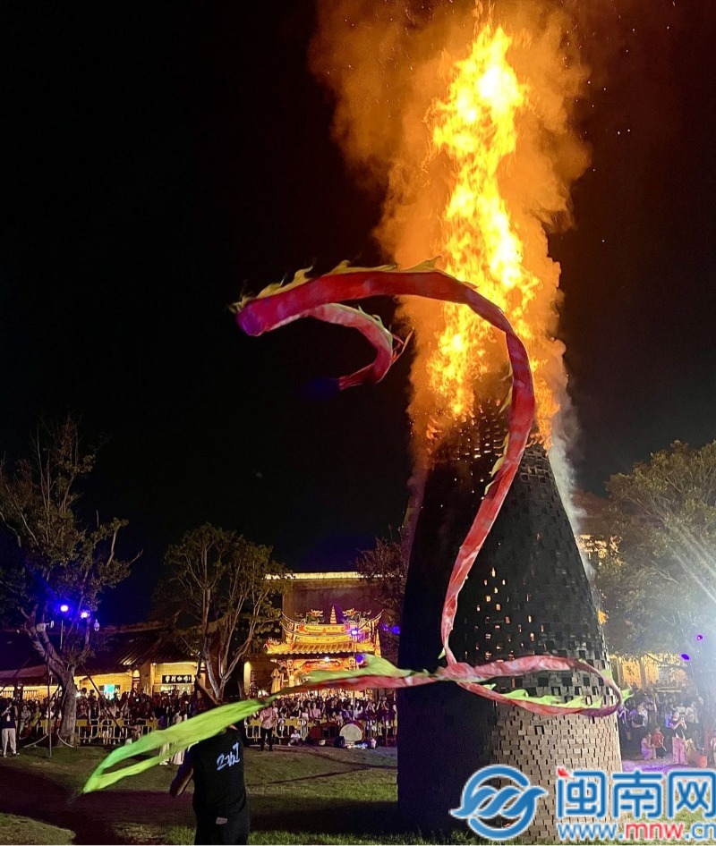 晚上7时许,只见由砖块垒砌而成的砖塔约五米高,随着点火仪式开始,一瞬间火焰在塔内欢腾跳跃,紧接着便火光冲天,噼啪作响,仿佛在诉说着古老的故事——烧塔仔民俗相传最早起源于元代末期,闽南人以烧塔为号,相约起事,推翻暴政。