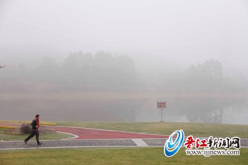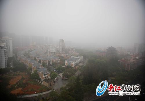 昨日上午,晋江雾气蒙蒙,宛如进入仙境一般,市区的高楼大厦在雾气笼罩下载浮载沉。微信朋友圈不少人叫绝:“神仙下凡了?为了隐身,特带来一场大雾。”据了解,这是由于南风天气驾到,气温开始回暖而湿度开始回升所致。其实,雾气从16日晚上就出现了。16日21时41分,晋江气象局发布了大雾黄色预警信号,这场大雾一直持续到昨日早上。昨日,这场大雾,可以说是今年以来持续时间最长的一场了。大雾在中午时分散去,天空虽然没有出现“红日”,却也不时出现“白日”。墙壁、镜子虽然还没有到“冒汗”的地步,也蒙上了一层水汽。(记者 曾舟萍)
