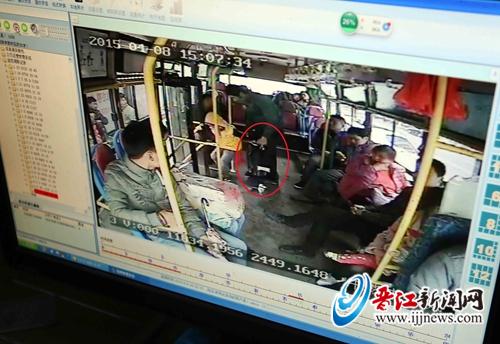 昨日,记者在晋江公交公司通过观看当时的监控录像发现,一名男子拿走了王月雅的塑料袋。