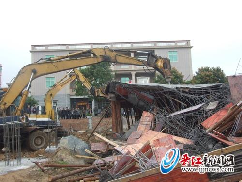 大型拆除机械“轰轰”作响,刚建好的违法建筑轰然倒下。昨日,灵源街道办事处联合晋江市行政执法局,组织行政执法、国土、公安、电力等相关单位开展大型拆违行动,对辖区小浯塘、大山后一带的违建进行拆除。此次行动拆除违建14宗,涉及违建面积5000多平方米,这是今年来灵源街道最大规模拆违行动,有效地遏制了抢建歪风。