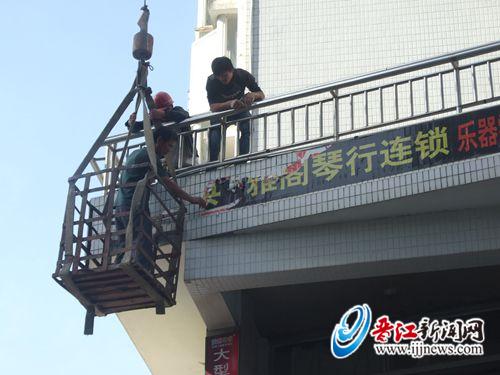 市容中队对高空乱张贴进行清理。