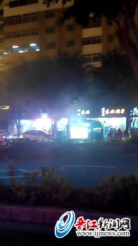 镜头三:晋江市迎宾路威兰超市附近人行道上的烧烤摊在营业时排出的浓浓烟雾,污染了城市环境和空气。希望相关单位尽快整改。