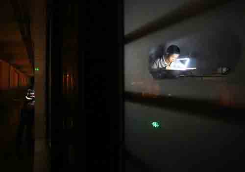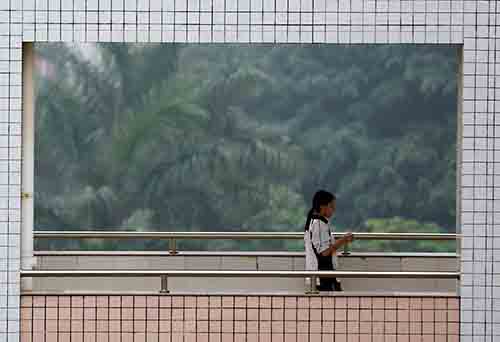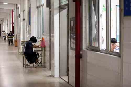 在教室的走廊上,可见三三俩俩的学生,有的手捧课本轻声念读,也有的就静静地站在那里,感受微风徐徐的那份惬意,紧张疲惫的他们也需要片刻的休息。