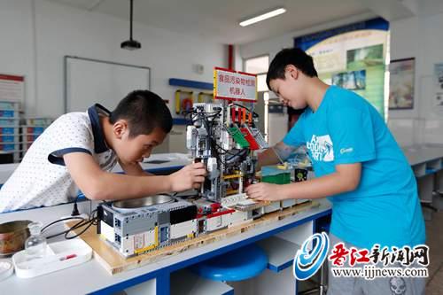 近日,记者走进晋江市实验小学机器人工作室,吴田镕、游诗韬两位同学正在许长熊老师的指导下一遍又一遍调试和操作食品污染物检测机器人。由于在省赛夺魁,实小代表队也再次获得了参加全国赛的机会。7月份他们将代表福建参加在内蒙古自治区鄂尔多斯市举行的第十五届中国青少年机器人竞赛,最近这段时间,他们正在做赛前准备工作。本报记者_庄诗莹郑翔文图
