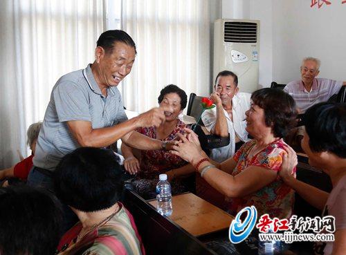 昨天,晋江陈埭25对老年人朋友一起度过七夕情人节。这些老人大多已经携手走过金婚,但收到老伴的玫瑰花,许多人还是第一次。