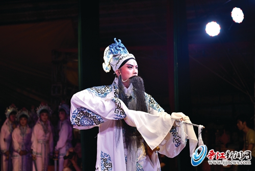 和其他参加戏剧展演节的民间剧团不同,当晚参演《卢俊义》的演员们来自晋江市打城戏传承协会,多数是打城戏国家级“非遗”传承人吴天乙的弟子,其中不少在其他民间剧团担纲主要角色,有的已在经商,为了传承打城戏而义务参演。