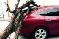 2015-08-11 10:31 来源:晋江经济报昨天中午1时30分许,风雨交加。晋江罗山街道晋兴御园小区门口,一辆停在人行道上的红色小轿车被路旁一棵枯萎的绿化树砸中,所幸无人员伤亡。 下午3时许