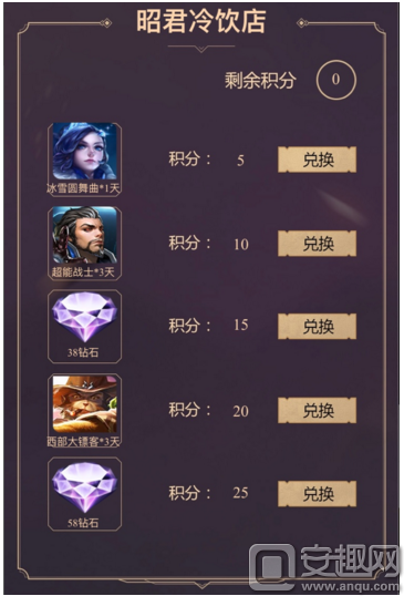2、使用积分可以直接兑换皮肤体验卡、钻石等奖励。