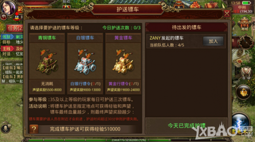 当玩家升级到35级以后,就可以做镖车护送任务了,每天三次,大量经验和声望不可错过哦。小编提示镖车护送记得用绑定元宝买白银行镖令哦,当然rmb玩家们黄金行镖令,你值得拥有。玩家们每天坚持做了以上小编说的,快速升级不是梦。每天这些做完,挂机优先勇闯炼狱,如果想升级顺便搞点装备,就去野外地图备足药水挂机,当然这两个方法遇见那些喜欢pk的玩家,可能当你睡后被砍到安全区了,挂机有风险,谨记。