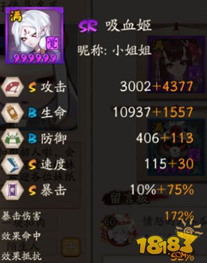 优点:残血爆发力惊人,输出靠平a,不消耗鬼火,给其他四个式神留有足够的搭配空间,面板生命防御属性较好,生存能力强。对方在秒不掉吸血姬的情况下不敢轻易把吸血姬打成残血。