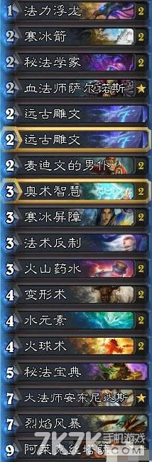 秘法学家,这张检索卡让我想到一个恶心的卡,也就是这套卡的第二春k卡,“法术反制”,这是一张很针对环境的卡,一卡打崩很多职业,在可悲被检索的情况下,对奥数巨人和安东尼的保护能力又上了一个台阶,而且人们的惯性思维往往很容易把这张卡判断为一张冰甲,很不幸,信息战,他们落入了圈套。这张卡终结比赛的能力往往超乎想象,只要一张,就能让控制卡组瞬间崩盘,运用得当的情况下,就是胜利的终极组件。