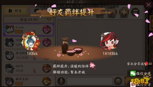 阴阳师亲友等级包括了友谊的见证、温暖的陪伴、永远的羁绊,但是功能开发就到第一个,后续还会开放另外两个功能,而目前进度条可以一直增加羁绊值。