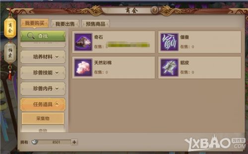 采集物,现在只有紫色品质的才可以在交易商会进行出售和购买。