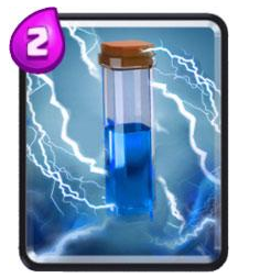 卡牌玩法:电击法术是一张2费的普通卡牌,所以在获取和培养上较为容易,这张卡牌在8阶竞技场中主要用来对抗非常热门的骷髅军团,可以利用较快的释放直接斩杀,从而赚费,并且由于有着不错的打断和0.5秒的眩晕效果,所以用来辅助进攻和打节奏都是不错的。
