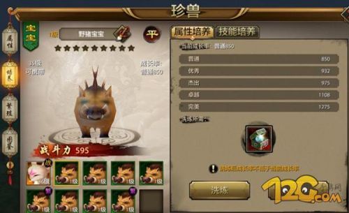 珍兽宝宝的成长率可以用洗炼丹来进行提升,每次需要两颗,提升的几率随机。