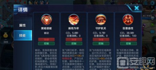 使用思路:这个技能在张飞在变狂前是辅助技能,在战斗时跳向队友增加护盾,可以吸收很多的伤害,打团的时候护盾的减伤很重要。作为位移技能可以翻越障碍物,也能用于逃跑。变身之后,这又是一个强力输出技能,可以先手突进扎进人群,造成巨额伤害,也可以保护后排,把突进的刺客拍在脚下。不管是什么状态,张飞二技能的实用性还是相当高的。