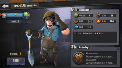 战地指挥官工程兵怎么样,战地指挥官工程兵技能属性一览。战地指挥官手游中的工程兵是近战的士兵,对敌军建筑物的伤害增加13,玩家完成新手引导即可获得这个单位,战地指挥官工程兵怎么样,西西小编为大家带来战地指挥官工程兵技能属性一览。
