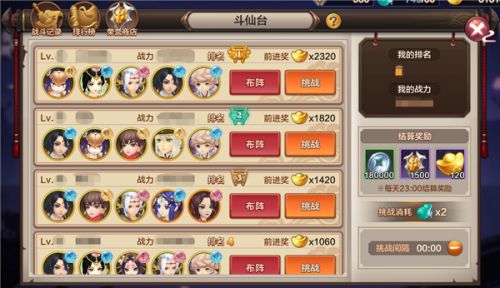 当召唤师通关副本3-10后,即可开启斗仙台玩法。在斗仙台中,召唤师通过消耗耐力与其他玩家相互角逐,每当现排名超过历史最高排名,即可获得元宝奖励。同时每天23:00进行奖励结算,召唤师将依据现排名获得铜钱、荣誉、元宝等奖励。
