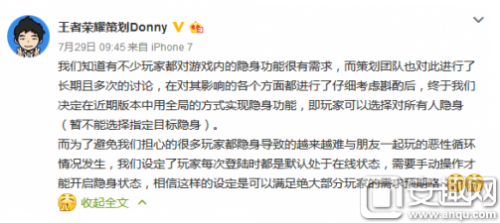 从爆料中我们可以知道对好友隐身的功能需要手动开启,并且是每一次上线都需要哦,虽然每次上线都要手动设置比较麻烦,但是好歹官方还是听取玩家的意见加入了该功能,还是比较值得肯定滴。