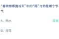 2026-02-18 16:23 来源:闽南网“春雨惊春清谷天”中的“雨”指的是哪个节气?这是2026年蚂蚁庄园2月18日庄园小课堂的问题,下面为大家详细介绍2026年2月18日今天蚂蚁庄园...
