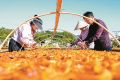 11月10日,龙岩市永定区陈东乡城东村的柿饼晾晒场一派繁忙。柿农徐满娣正带着村民忙着制作订单柿饼,竹架上金灿灿的柿饼整齐排列,远远望去,仿佛给大地披上了一...