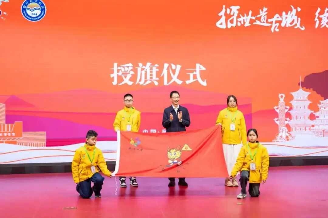 活动现场举行了授旗仪式与启动仪式,与会领导为各营员团组授旗,并按下启动掌印,标志着冬令营正式开启。
