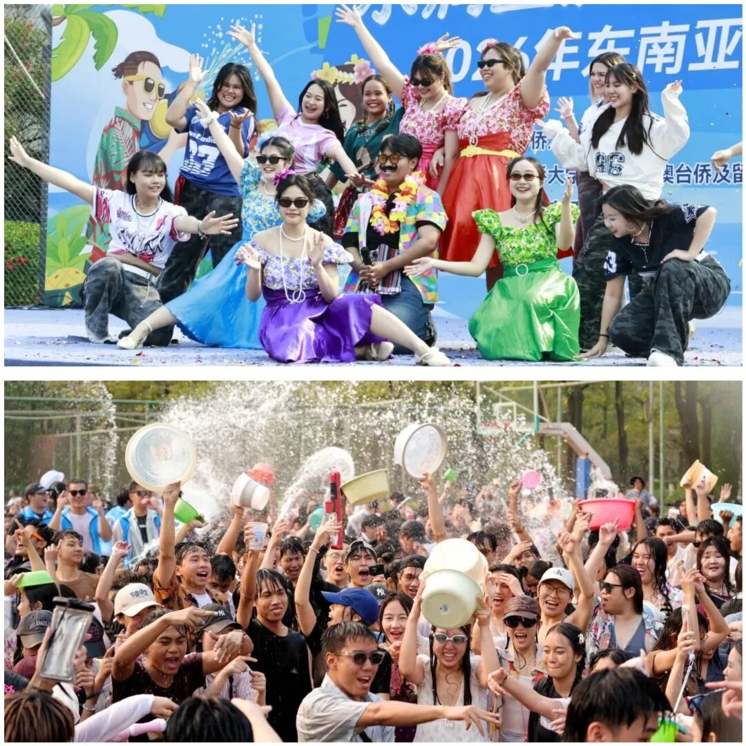 而在华侨大学的泼水节上,孩子们彻底“放飞”了自我。水花四溅,笑声震天,不同国家的华裔少年互相泼洒祝福,在文明互鉴中,青春的共鸣比水花更热烈。