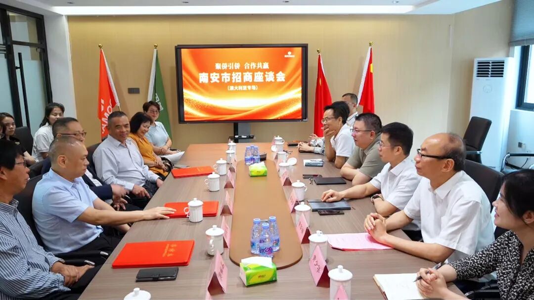 4月15日,澳大利亚南安同乡会代表团来南开展商务洽谈活动。南安市委常委、统战部部长蔡清安,市委常委、副市长周全,澳大利亚南安同乡会永远名誉会长傅港生、澳大利亚南安同乡会执行会长杨佳庆、福建东南网驻澳洲海外站站长吴雷蒙、澳洲橡树湾湖海度假庄园董事长秦豫伟、澳洲南安建材供应和安装有限公司总经理杨玉梅、固美金属股份有限公司董事长陈东升、澳大利亚(固美)分公司董事长陈金波以及南安市委统战部、市商务局、市文体旅局、市侨联、市内外贸高质量发展指挥部办公室、市文体旅集团等单位相关领导参加活动,活动由市侨联党组书记、主席黄印棉主持。