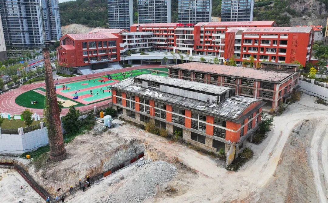 在北山片区,记者走进项目现场看到,老厂房的部分建筑仍被留存着,标志性的烟囱屹立如初,一旁的挖掘机正挥舞着长臂忙碌作业着,工程车辆往来穿梭,各项施工有序推进。