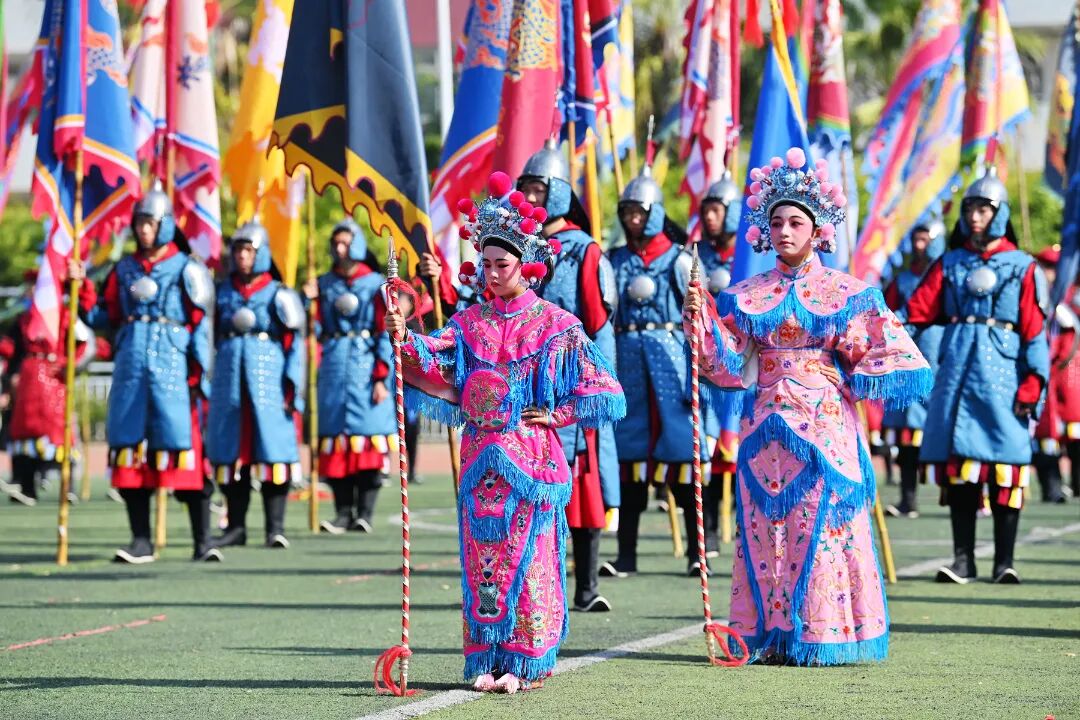 展演中,还有十二花神舞蹈、非遗高甲戏表演等环节。十二花神身姿曼妙、步履轻盈,伴着旋律起舞,为雄浑的演武展演增添了几分灵动柔美。少儿高甲戏展演更是活动的点睛之笔,精美的戏服和小演员们生动地演绎,让传统文化与成功精神在童心中活态传承。