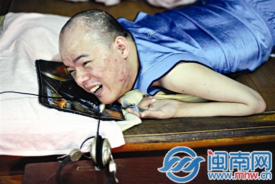 南安洪濑,29岁的苏宝军躺在床上,用脸颊触碰鼠标,艰难地在电脑上,写下他对命运的宣战书。