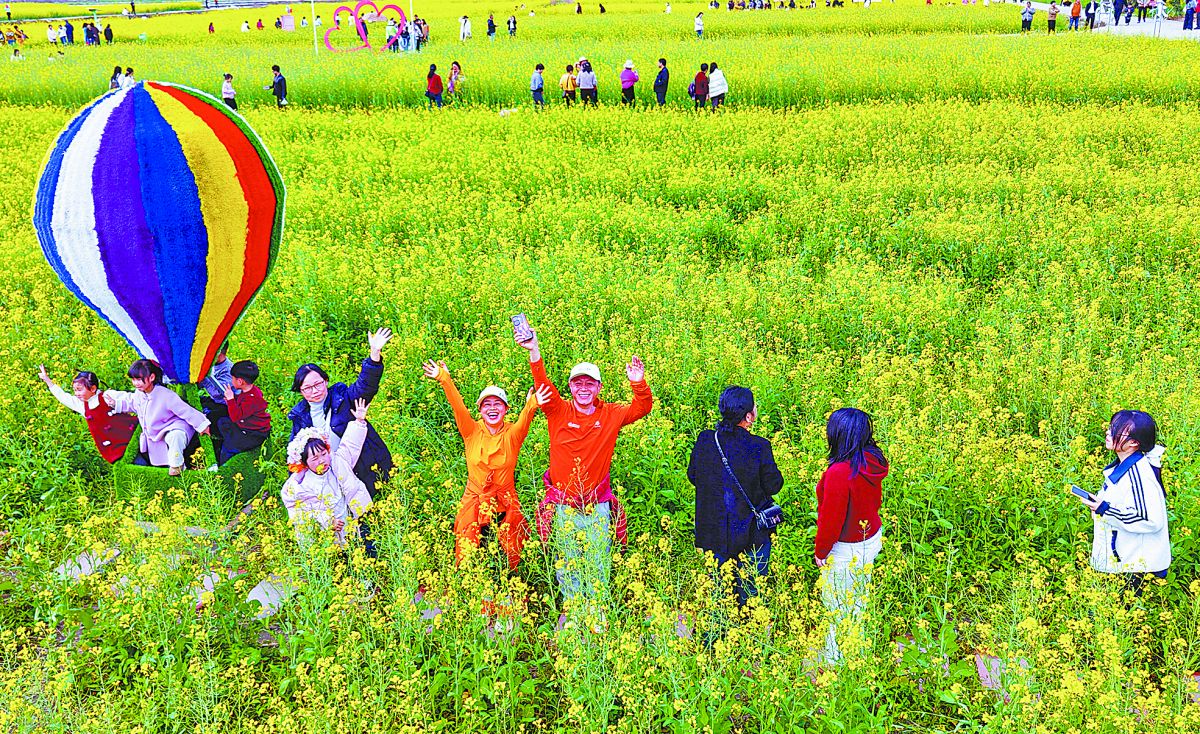 8日,气温回暖,春意渐浓。邵武市城郊镇香铺村300余亩油菜花迎春盛放,不少游客漫步花间小径,赏花打卡、合影留念,沉醉在烂漫春光之中。