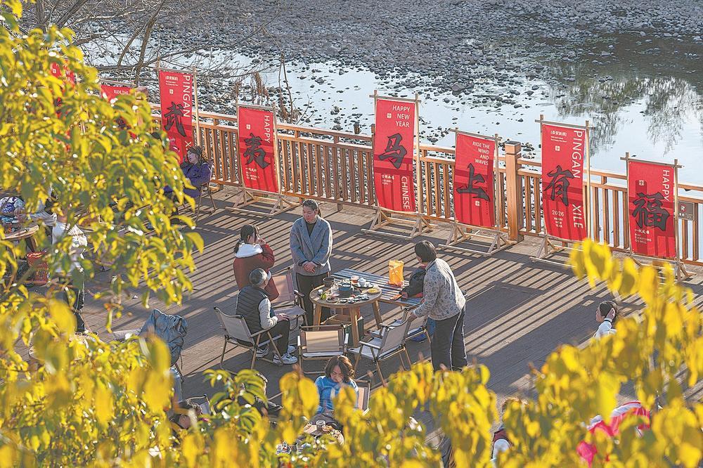正月初四,武夷山市崇阳溪漫步道围炉煮茶体验人气正旺,市民游客在茶香与暖阳中尽享慢时光。陈天博 摄