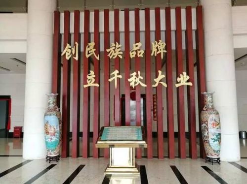 一楼大厅,进门便可看见“创民族品牌立千秋大业”几个金色大字。这几个字,被陶华碧立为老干妈的企业理念。诸如此类介绍企业文化口号的标语,在老干妈行政楼并不多见。