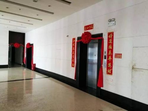 大楼内部装潢简单,每间办公室均装有日常家庭所用的防盗门,门口用红色布条扎有大红花一朵,位于门楣中央,显得尤为显眼。