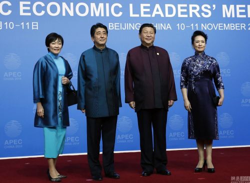 安倍晋三夫妇和习近平夫妇合影。