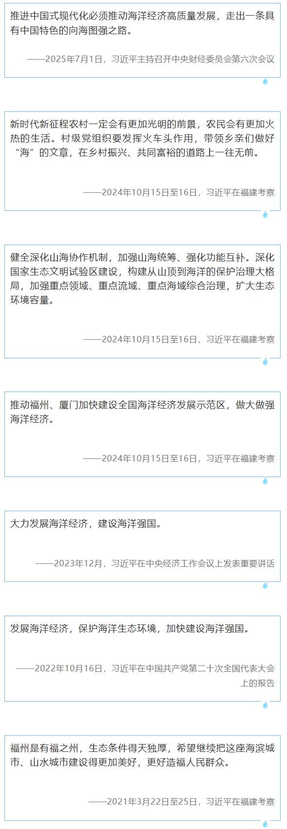2024年10月,习近平总书记在福建考察时指出,“推动福州、厦门加快建设全国海洋经济发展示范区,做大做强海洋经济”,为福建发展海洋经济把脉定向、指路引航。