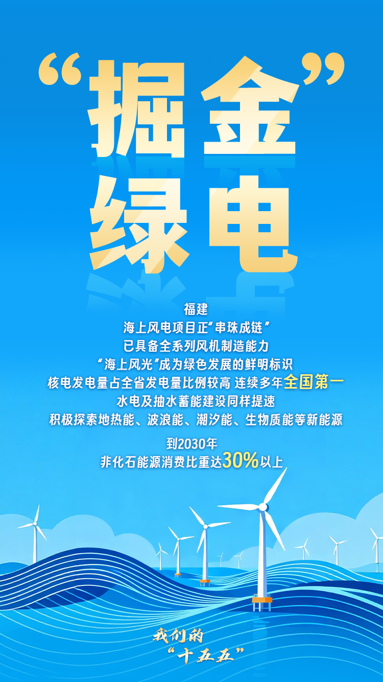 从风电机组的旋转到光伏板的闪光,从核电基地的稳定输出到抽水蓄能的灵活调节,福建正在山水之间持续挖掘绿电潜力,为"双碳"目标注入蓝色动力。(记者 卢金福)